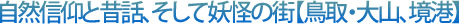 鳥取県の大山(だいせん)は信仰の山として知られ、多くの民話に登場していますし、山中にある出雲國神仏霊場第九番の「大神山神社」を訪ねる人が後を絶ちません。また、大山から眺められる境港の街は、今では“妖怪の街”として観光客を魅了しています。