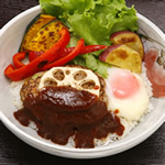 「光陽流モリモリロコモコ」は地元産の根菜がたっぷり入ったロコモコ。光陽流とは、地元の朝倉光陽高校の生徒が考案したメニューだから。