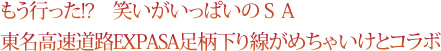 「日本一面白いSA」をテーマに9月14日にオープン、平成26年3月31日(月)までの限定企画なのが、フジテレビで毎週土曜日午後7時57分から放送されている『めちゃ2イケてるッ!』とのコラボレーション。