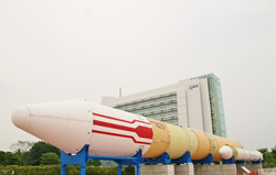 さて、「JAXA筑波宇宙センター」の正面にあるのも全長約50m、直径約4m、質量約260tの「H-Ⅱ」ロケット。JAXA(旧宇宙開発事業団)が10年の歳月をかけて開発したものだ。
