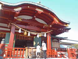 庭園散歩が楽しめる亀戸天神社。境内には子ども連れや学生同士の参拝者が目立ちました。