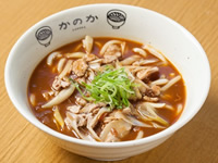 国産そば粉使用のそば、米粉うどんが評判の「かのか」の名物カレーうどん。千葉県産米粉を使ったうどんに、千葉のブランド豚を用いたカレー汁がからむ逸品。