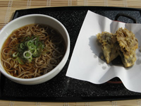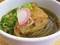先代竹田谷口屋の味を守り続ける「厚揚げ」を秘伝のタレで煮て、越前そばの上にトッピング。やや太めのおそばと、味が染み込んだ厚あげがベストマッチ。