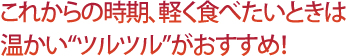 レジャーや仕事の帰り道。しっかり食べる夕食は自宅に戻ってからでいい。でも、夕暮れ前のひとときって、なんだかお腹が空くものだ。これからの時期、おやつタイムの軽食は温かい“ツルツル”がうれしい。