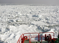 紋別には流氷を砕きながら進む流氷砕氷船ガリンコ号があり、冬のツアーの目玉になっている。船から見る流氷は素晴らしいし、ときには鷲や海の生物との出合いもある。