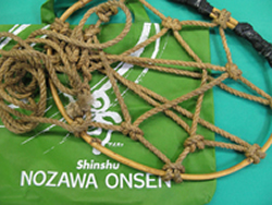 野沢温泉では四季を通じてさまざまな体験を行っている。冬はスノーシューや雪上車で楽しむ雪原遊覧ツアーなども楽しそうだが、作って歩くかんじき作りに心惹かれてしまった。スキー場ができる前の野沢の冬は、室内でのつる細工や竹細工が暮らしの支えだった。雪の上を歩くためのかんじき作りもそのひとつ。それを作って、雪上を散歩しようというのだ。昔の雪国を知るうえでもいい体験だ!