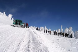 蔵王スキー場に初めて行った時、樹氷を見るだけで幸せな気持ちになった。それはみんな同じだったようで、蔵王周辺にはスキーヤーやスノーボーダーにまじって、長靴を履いた観光客をよく見かける。国内外からやって来た、樹氷ウォッチャーたちなのだ。宮城蔵王、山形蔵王では雪上車を利用した樹氷めぐりツアーを行っている。巨大化する時期を狙ってでかけよう。