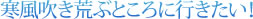 しかしこの前、居酒屋に遊びに行くと、「ねえ、寒風吹き荒ぶ光景が見てみたいのよ。国内で簡単に行ける場所はないのかね」と、80歳近いおばさんに言われた。