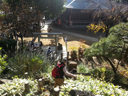 とくに大銀杏がみごとでした。第二次世界大戦の戦火にも残った御神木の大銀杏のほかにも、太陽の光を受けて黄色に変わった葉を輝かせている巨大な銀杏がありました。
