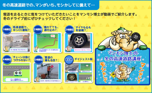 “マンがいち”“モシかして”から生まれた“マンモシ博士(もちろん、マンモスがモチーフです)”が雪道運転のノウハウを教えてくれるのだ。