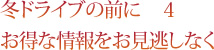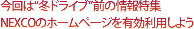 冬になれば自動車道にも雪が降り、夏ドライブとは異なるさまざまな状況が生じる。冬のドライブ・トラブルに遭わないために、NEXCO各社のホームページ・コンテンツをチェックしよう!