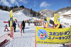 たとえば、スポンジ・ボブのスクールはGALA湯沢、岩原、上越国際スキー場で開催中。