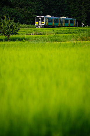 ピンポイントでピントを合わせてその前後をボカし、メインとなる被写体(ここでは列車)を浮かび上がらせた作例です。