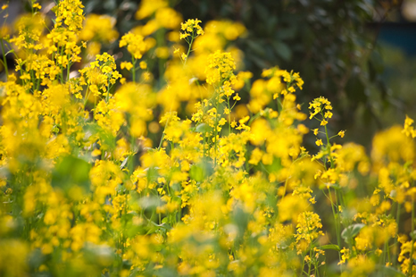 ナノハナは房状の小さな花が咲きます。ボリューム感を出すために群生した場所で狙うと、どうしても雑然とした印象になってしまいます。