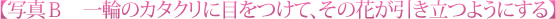 このときも写真B同様、狙いやすく形のよい花を選ぶのがポイントです。とくに花の密集度が高く、形のよい花が遠くにある場合に有効な方法です。