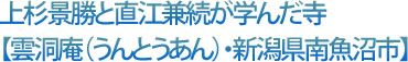 その直江兼続が生まれたのが新潟県南魚沼市(湯沢という説もあります)で、幼き頃に修行をしたのが「雲洞庵」なのです。