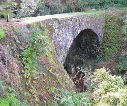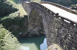 三五郎の名を有名にしたのは25歳のときに架橋した雄亀滝橋でした。強度のあるこの橋は今も残り、日本初の水路橋として知られています。