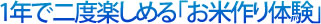 今回、ぼくが推奨したいのは、春も秋も楽しめる田植えと稲刈りがセットになったお米作り体験だ。