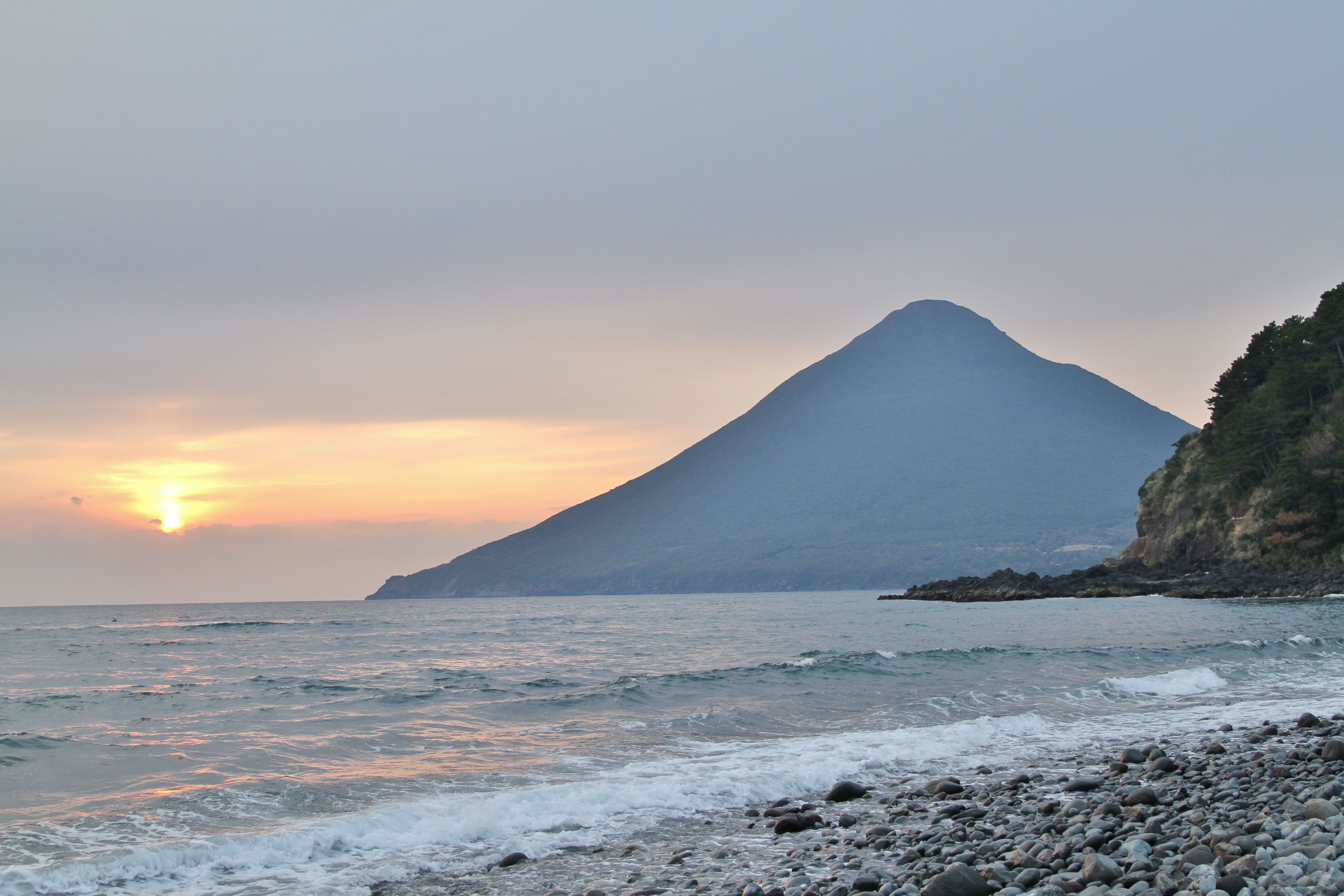 取材で鹿児島県薩摩半島に行ってきました。その詳しい様子と薩摩半島の素晴らしさは月刊『旅行読売5月号』を読んでいただくとして、今回はその合間に撮影した開聞岳です。映画『永遠の0』が評判になりましたが、知覧基地を飛び立った隊員が最後に見た山かもしれません。今は海に浮かぶ姿、茶畑の向こうにそびえる姿など、美しい風景を見せてくれています。
