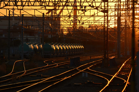 写真Jのようにいろいろな要素(貨物列車、線路、架線柱、夕焼け空…など)が入った写真も、どこにピントを合わせてよいかカメラには判断できません。