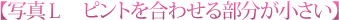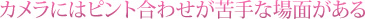 このケースでは、前述のフォーカスポイントを1点にしてピントを合わせようとしても、ピントはなかなか合いません。