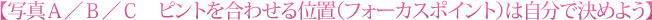 ファインダーで見た際のピント合わせのイメージが「写真C」になります。