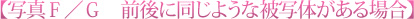 写真F、Gのように前後に同じような被写体があり、どっちを狙うのかカメラが判断できないケースがあります。