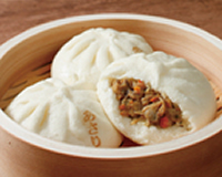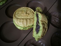 高崎といえば“だるま”。それがそのまま名物になった。桑の葉が入った生地の中は「つぶあん」と「カスタード」の2種類。ほどよい甘さがいい。(180円)