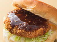 コロッケといってもそこは地場モノを生かした工夫がされている。茨城産のレンコンが入ったしゃきしゃきとした食感がなんともいえないコロッケをはさんで!(230円)