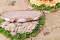 タマゴとツナの2種類のカンパーニュサンドは午前中に売り切れてしまうほどの人気。ブランチにぜひ。カンパーニュは店内で仕込んでいる。野菜も新鮮でおいしい。(280円)