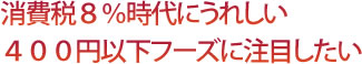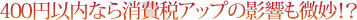 しかし、400円のものなら消費税増税分のプラスは12円。4人家族でも48円と50円を切るから、それならまあ、許容範囲となるのでは…。