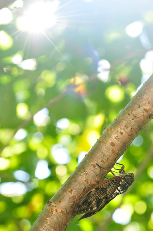 写真G/Hはアブラゼミの写真ですが、フラットな光で撮影した写真Gに対し、写真Hは太陽の光を直接取り入れ、夏の日差しの強い午後という物語を写真に盛り込んでみました。