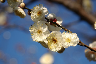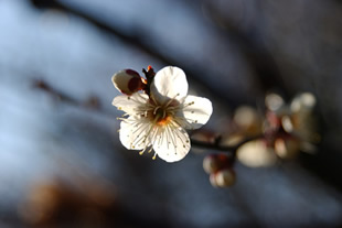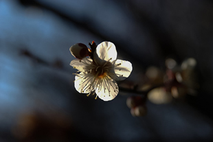 梅の蘂の形と光に透ける花びらの印象を強めようと狙ったものです。順光の場合と比べ、露出補正によって印象が強まったと思います。
