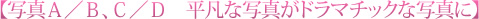 写真A/B、C/Dはそれぞれ順光と逆光で撮影した写真です。