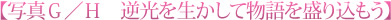 つまり、それだけ主義主張が強いのが逆光です。逆光を使うことで、写真にストーリー性を持たせることができます。写真Hはその例です。