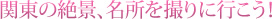 名所、観光地といえばもちろん、絶好の撮影ポイント。しかも自然の撮影ポイントも多いので、今回、越カメラマンがアドバイスしてくれた「逆光」を試すのに最適でしょう。