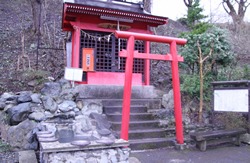 土地の所有者が夢のお告げによって温泉を掘り当てたことに感謝して設立した「お湯かけ弁財天」です。