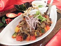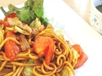 昭和50年代、高梁市の学校給食メニューのひとつにインディアン焼きそばがあり、子どもたちに大人気だった。インディアンとはご想像どおりカレー味のこと。それに高梁名産のトマトを加え、より美味になって復活。