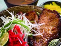 三重県四日市のご当地グルメが“とんてき”。分厚く切った豚肉とにんにくを、特製のタレでソテーしており、ボリュームもたっぷりのスタミナのつく逸品。三重県は松坂牛ばかりではなく、豚もおすすめだ。