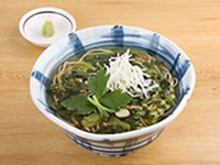 葉わさびの辛さと、善光寺の七味唐辛子がベストマッチで、なんともいえない風味の信州そば。提供するのは定評のある「信州そば処 そじ坊」。そば畑がある産地に行かなくても、SAでおいしい信州そばが味わえる。