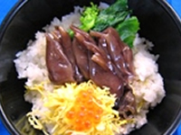 しらす丼というと江ノ島が有名だが、北茨城の名産でもあり、しらす漁体験なども人気を博している。その生食用しらすを釜揚げにした贅沢な逸品。同じく名産の奥久慈卵との相性も抜群だ。貴重な名産丼といえるだろう。
