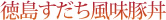 「四国DON丼」グランプリ最優秀賞受賞メニュー! おもしろいのは、すだちとすだちジュレをトッピングしたこと。特製醤油に漬け込んで焼き上げたジューシーで香ばしい豚肉とすだちの酸味がみごとに調和した。