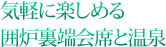 囲炉裏端で上州牛や野菜を焼いて食べるコース料理と入郷料、入浴料がセットになったプランだ。