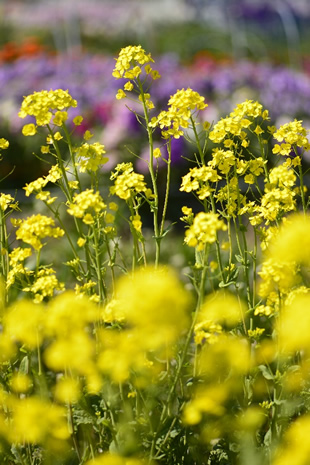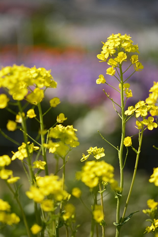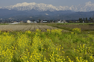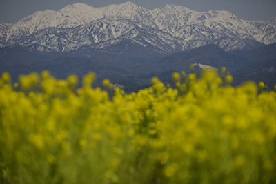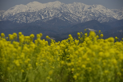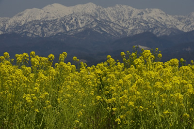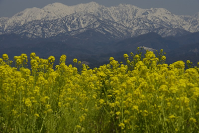 先日、富山県立山の麓の町を訪れました。車を走らせていると、道ばたの畑にナノハナが咲いていました。