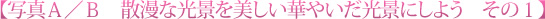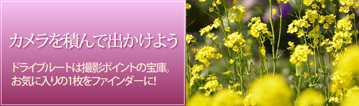 当然、これでは散漫な写真になってしまいます。そこで、ナノハナを“前ボケ”にしようと思って撮影したのが写真Bです。