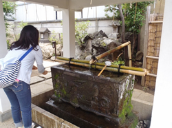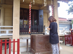 手水舎で清め、御賽銭をあげてお祈りをし…。