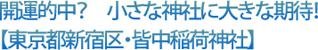 江戸時代に皆中稲荷神社にお参りしてから射撃訓練を試みたところ百発百中! その噂は瞬く間に広がって、神社の霊符を求める人が殺到したという伝説が残るだけに、今では「宝くじ」が当たるパワースポットとして人気を博しています。