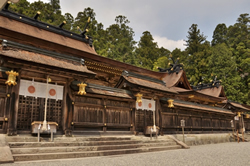明治22年(1889)の熊野川の大洪水により、大半が流出し、かろうじて残された上四社の社殿を、そのまま現在の場所に移築したのが熊野本宮大社だ。