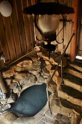 扉を開けるとすぐ脱衣所があり、階段を数段下りたところに小さな湯船が口を開けている。