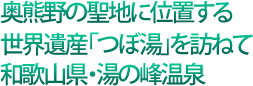 温泉浴場として世界で初めて世界文化遺産に登録されたのが、和歌山県・湯の峰温泉の「つぼ湯」だ。「つぼ湯」は熊野詣の際に体を清める湯垢離場として知られ、聖地・熊野で温泉文化が脈々と受け継がれてきた。